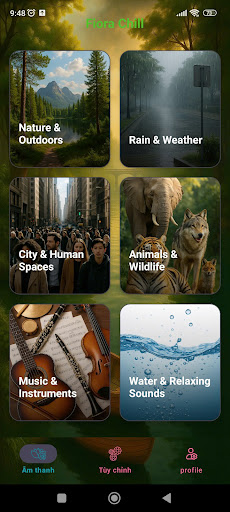 Fiora – City & Nature Sounds brings you a calming sound experience designed to help you relax, sleep better, and stay focused. Discover a rich collection of high-quality ambient sounds from nature, city environments, weather, wildlife, and soft musical instruments — all crafted to create peaceful moments in your daily life. Whether you need a quiet background to work, a soothing environment to sleep, or a refreshing space to meditate, Fiora offers soundscapes that feel real, immersive, and emotionally comforting. Main Sound Categories • Nature & Outdoors: Forest ambience, wind, valleys, lakes, mountains, insects. • Rain & Weather: Light rain, heavy rain, thunderstorms, wind, campfire. • City & Human Spaces: Coffee shop, street ambience, train station, subway, office. • Animals & Wildlife: Forest birds, dogs, cats, wolves, frogs, farm animals. • Music & Instruments: Piano, guitar, flute, harp, violin, ambient pads, chill beats. • Water & Relaxing Sounds: Ocean waves, waterfalls, rivers, underwater ambience. Sleep Better & Reduce Stress Soft rain, flowing rivers, gentle wind, and calming instruments help quiet the mind, reduce anxiety, and support deeper, more restful sleep. Focus & Meditation Minimalist ambient tones help improve concentration while working or studying. Perfect for creating a peaceful space for mindfulness, yoga, and breathing exercises. Sound Mixer Combine multiple sounds to create your own personalized soundscape. Mix forest rain with soft piano, or blend café ambience with lo-fi pads — the choices are endless.