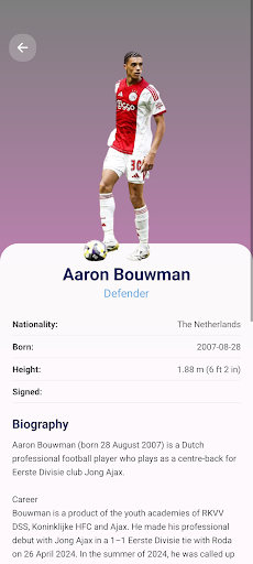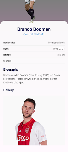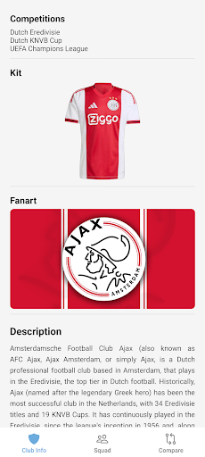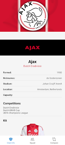 Guide Ajax FC is the definitive companion for every Guide Ajax FC supporter. Created by fans for fans, this app immerses you in the world of the "Guide Ajax FC" with comprehensive data on the squad, the DRV PNK Stadium, and the club's legendary history. Key Features: Club Insights: Dive into the rich history, trophy cabinet, and stadium facts. Squad & Players: Detailed profiles including biographies, physical stats, and transfer info. Player Comparison: Analyze stars head-to-head with our intuitive comparison tool. Fan Community: Stay connected with quick links to official social channels. Disclaimer: This is an unofficial fan application and is not affiliated with Guide Ajax FC Football Club.