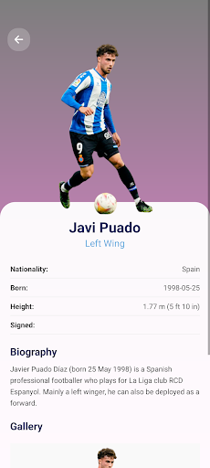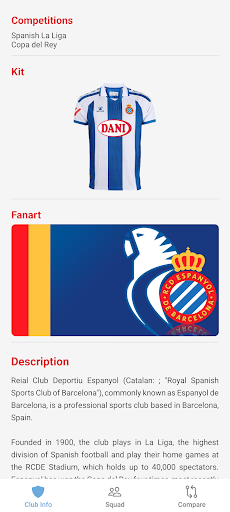 Guide Espanyol FC is the definitive companion for every Guide Espanyol FC supporter. Created by fans for fans, this app immerses you in the world of the "Guide Espanyol FC" with comprehensive data on the squad, the DRV PNK Stadium, and the club's legendary history. Key Features: Club Insights: Dive into the rich history, trophy cabinet, and stadium facts. Squad & Players: Detailed profiles including biographies, physical stats, and transfer info. Player Comparison: Analyze stars head-to-head with our intuitive comparison tool. Fan Community: Stay connected with quick links to official social channels. Disclaimer: This is an unofficial fan application and is not affiliated with Guide Espanyol FC Football Club.