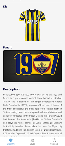 Guide Fenerbahce FC is the definitive companion for every Guide fenerbahce FC supporter. Created by fans for fans, this app immerses you in the world of the "Guide fenerbahce FC" with comprehensive data on the squad, the DRV PNK Stadium, and the club's legendary history. Key Features: Club Insights: Dive into the rich history, trophy cabinet, and stadium facts. Squad & Players: Detailed profiles including biographies, physical stats, and transfer info. Player Comparison: Analyze stars head-to-head with our intuitive comparison tool. Fan Community: Stay connected with quick links to official social channels. Disclaimer: This is an unofficial fan application and is not affiliated with Guide fenerbahce FC Football Club.