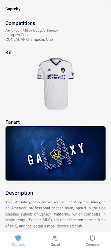 Guide LA Galaxy FC is the definitive companion for every Guide LA Galaxy FC supporter. Created by fans for fans, this app immerses you in the world of the "Guide LA Galaxy FC" with comprehensive data on the squad, the DRV PNK Stadium, and the club's legendary history. Key Features: Club Insights: Dive into the rich history, trophy cabinet, and stadium facts. Squad & Players: Detailed profiles including biographies, physical stats, and transfer info. Player Comparison: Analyze stars head-to-head with our intuitive comparison tool. Fan Community: Stay connected with quick links to official social channels. Disclaimer: This is an unofficial fan application and is not affiliated with Guide LA Galaxy FC Football Club.