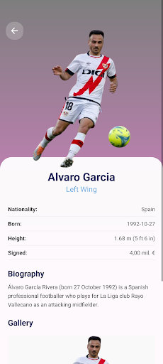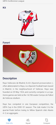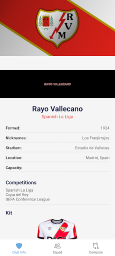 Guide Rayo Vallecano FC is the definitive companion for every Guide Rayo Vallecano FC supporter. Created by fans for fans, this app immerses you in the world of the "Guide Rayo Vallecano FC" with comprehensive data on the squad, the DRV PNK Stadium, and the club's legendary history. Key Features: Club Insights: Dive into the rich history, trophy cabinet, and stadium facts. Squad & Players: Detailed profiles including biographies, physical stats, and transfer info. Player Comparison: Analyze stars head-to-head with our intuitive comparison tool. Fan Community: Stay connected with quick links to official social channels. Disclaimer: This is an unofficial fan application and is not affiliated with Guide Rayo Vallecano FC Football Club.