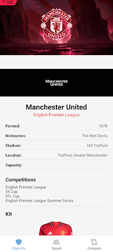 Immerse yourself in the world of the Red Devils with this comprehensive unofficial fan app, designed for the true supporter. From the rich history of Old Trafford to detailed profiles of every squad member, this app delivers everything a fan needs. Explore the club's legendary journey, view in-depth player statistics, and compare your favorite stars head-to-head. Key Features: - Squad Browser: Detailed bios, physical stats, and transfer info for the first team. - Player Comparison: Analyze players side-by-side with intuitive stats tools. - Club History & Stadium: Thorough guides to the team's heritage and home ground. - Fan Connection: Easy access to official social media channels to stay updated. Stay connected with the team you love. Disclaimer: This application is an unofficial fan project and is not affiliated with, endorsed by, or associated with Manchester United Football Club. All trademarks and copyrights belong to their respective owners.